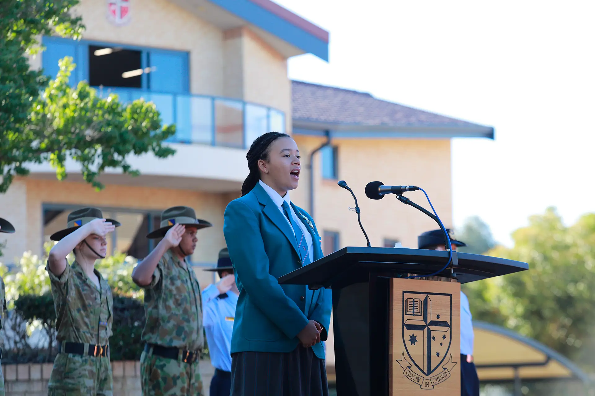 “So today, as we pause to remember the fallen and honour those who serve, let’s also commit ourselves to carrying forward their legacy. Whether you choose a path in defence, medicine, teaching or any other walk of life – carry the ANZAC spirit with you. Be courageous. Stand by your mates. Serve others with humility and heart. Let us remember with pride. Let us live with purpose. And above all… let us never forget.”